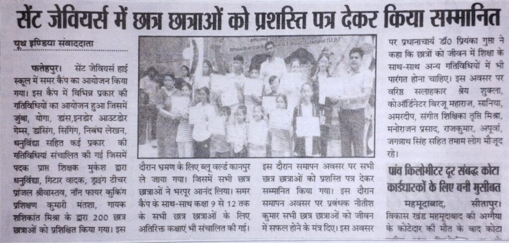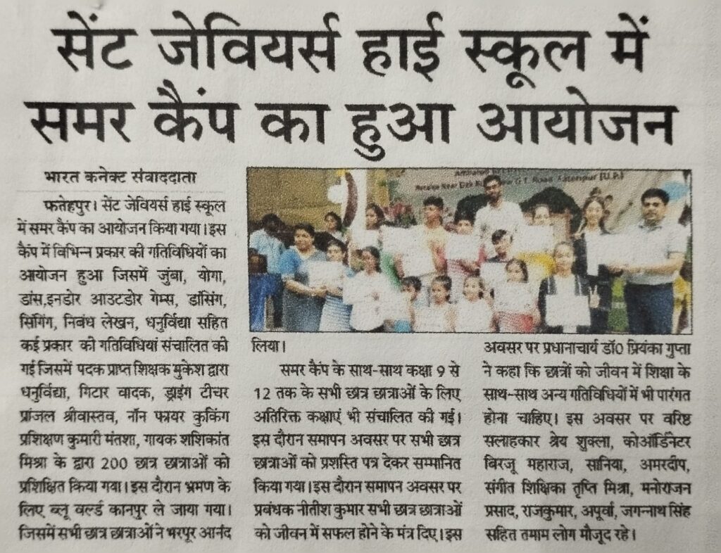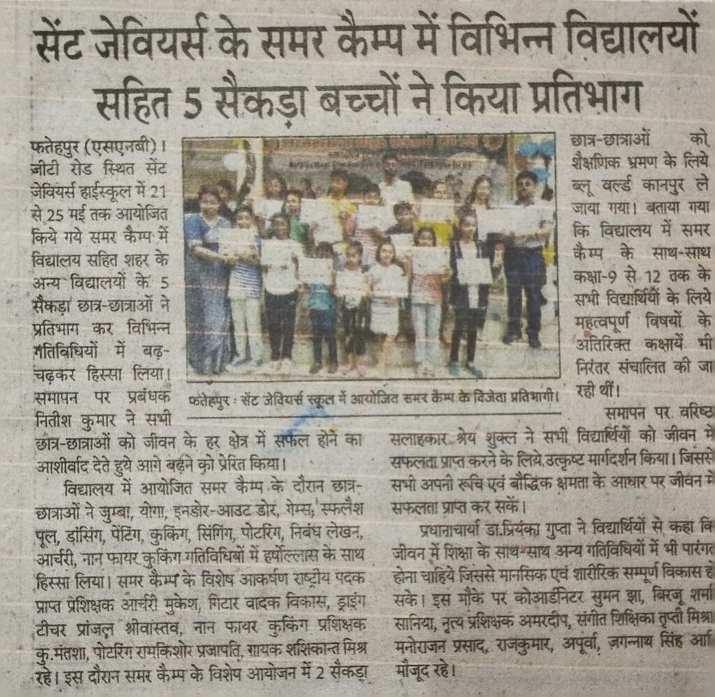 NEWS (SUMMER CAMP 2023) BlogNews NEWS (SUMMER CAMP 2023) Developer Aug 29, 2024 6 views 0 comments SUMMER CAMP NEWS – 2023 This NEWS was published in our esteemed newspaper DANIK JAGRAN NEWS, RASTRIYA SAHARA NEWS, HINDUSTAN NEWS, YOUTH INDIA NEWS Paper on , dated 24/05/2023 NEWS (13/05/23) Dainik Jagran News Paper NEWS (NEET Examination Qualified 2023-24) Related Posts Best School in Fatehpur for Excellent Education & Comprehensive Development Jan 30, 2026 6 views Republic Day Celebration Jan 28, 2026 1 views Rehearsing the Spirit of Republic Day Jan 28, 2026 0 views Parents Interaction Program Jan 28, 2026 0 views Victory at “Pariksha Pe Charcha” Program Jan 28, 2026 1 views Leave your thought here Cancel replyYour email address will not be published. Required fields are marked * Save my name, email, and website in this browser for the next time I comment.