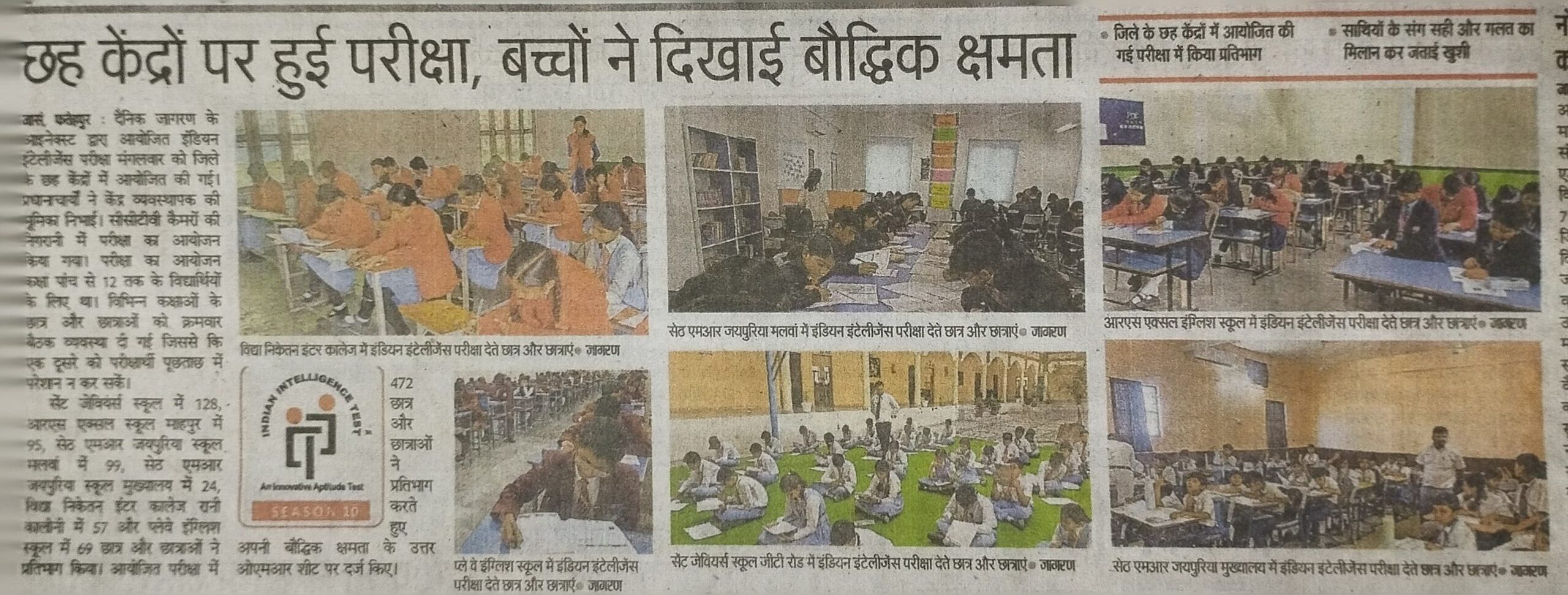 हिन्दी दैनिक जागरण द्वारा आयोजित इन्डियन इन्टेलीजेन्स परीक्षा का आयोजन (दिनाँक 05.12.2023)
