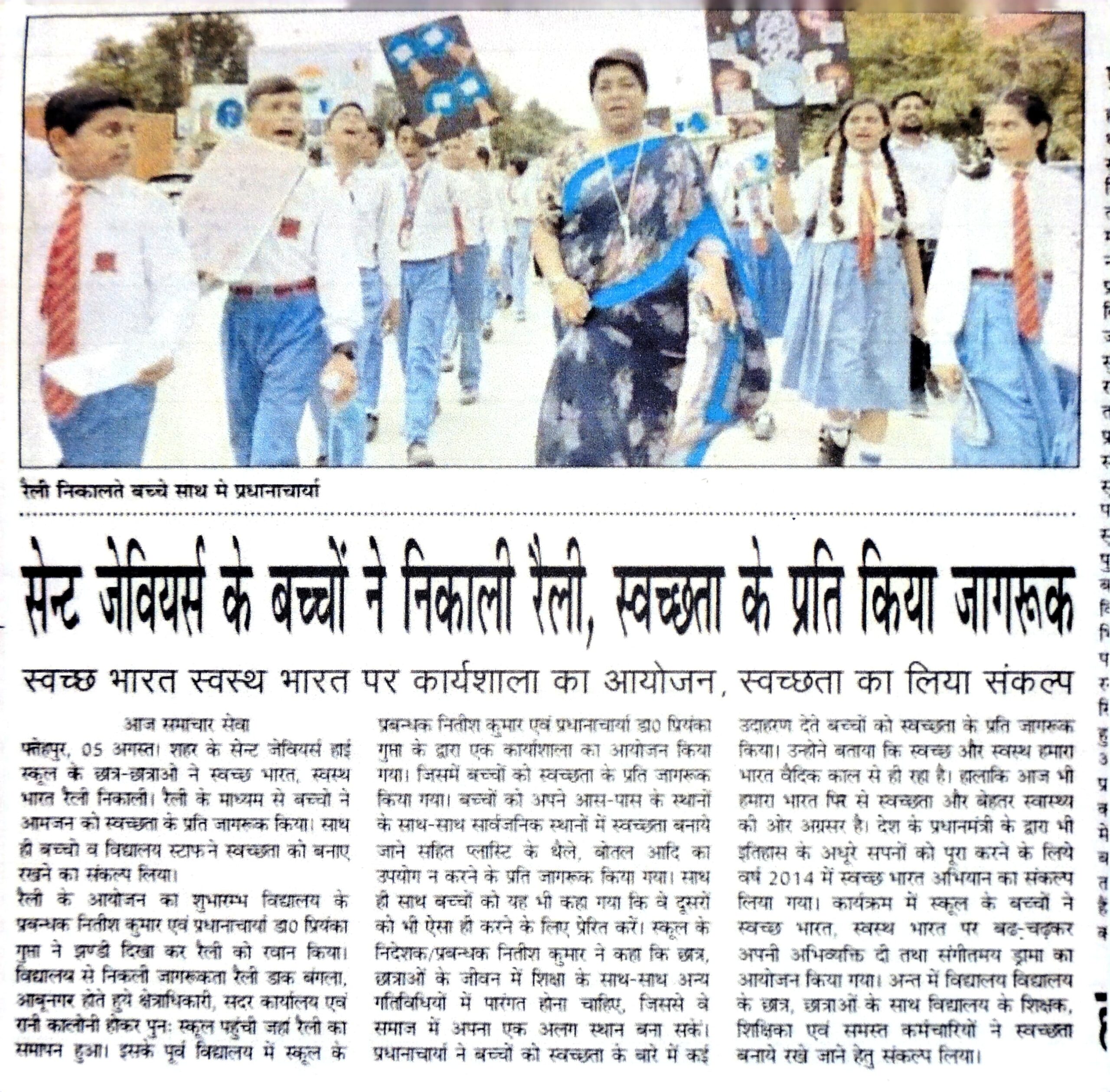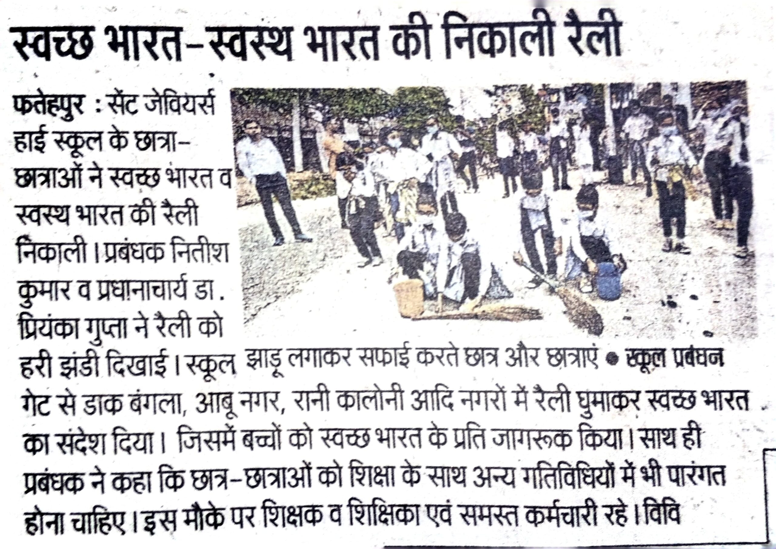 सेंट जेवियर्स के बच्चों ने स्वच्छ भारत स्वस्थ भारत रैली निकाल स्वच्छता के प्रति किया जागरूक