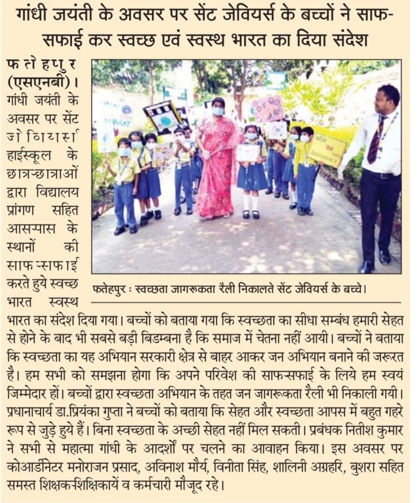 Children of St. Xavier’s cleaned and spread the message of cleanliness and created awareness about cleanliness.